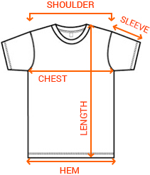 2. Width is measured across the body of the shirt under the armpits, one way.